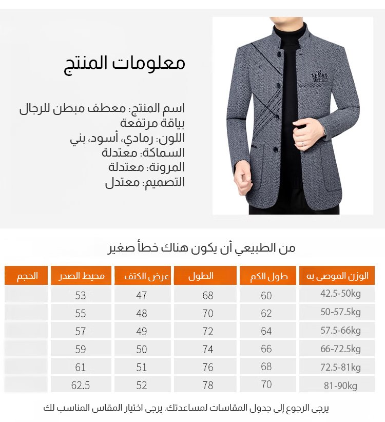 【موضة + دفء】مطعف رجالي مبطن بياقة واقفة